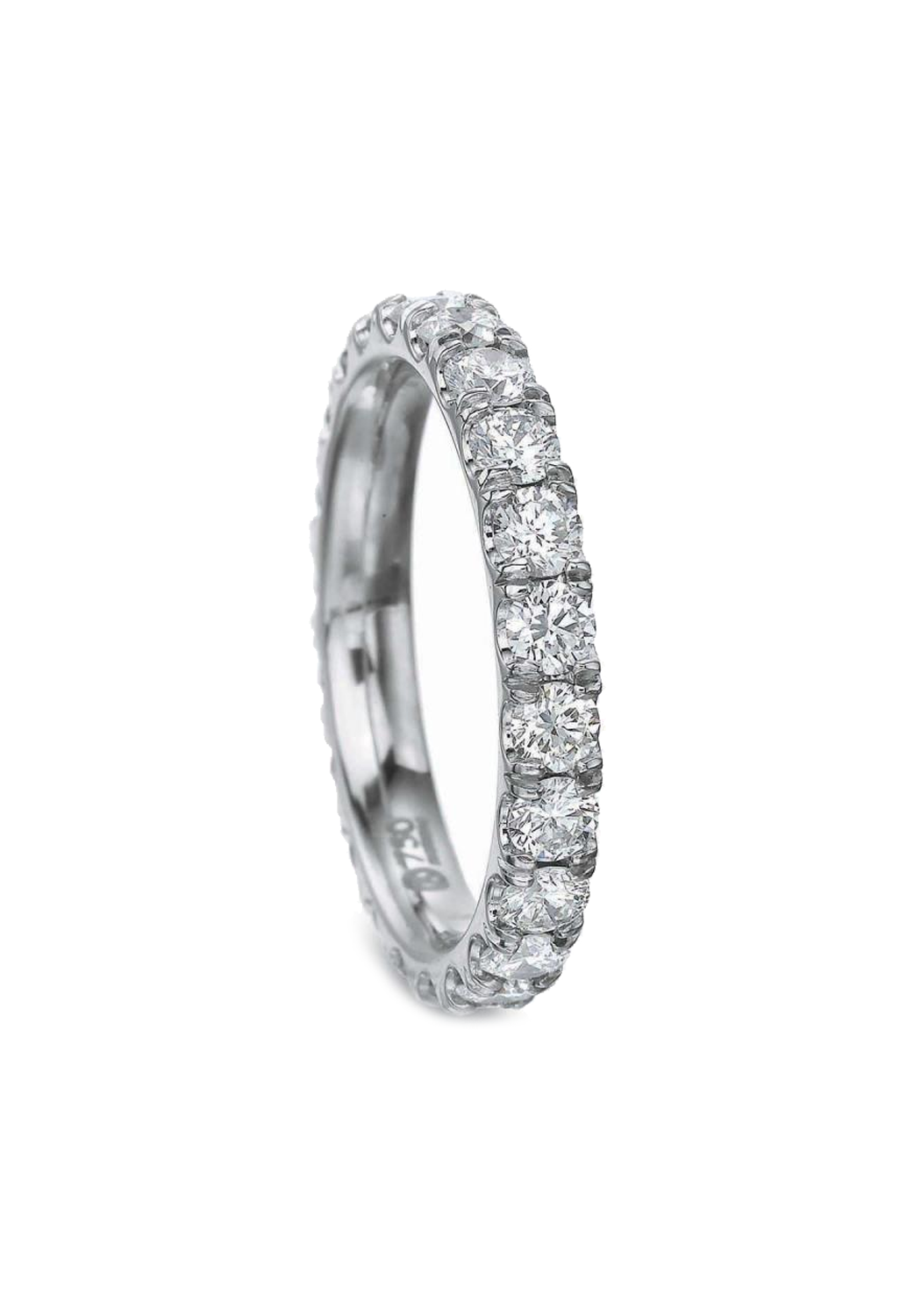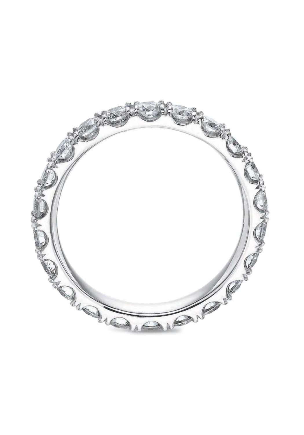 Discover the enduring allure of our Precision Set 18K White Gold Round Diamond Eternity Band, a symbol of infinite love and timeless elegance. This meticulously crafted diamond eternity band measures 2.7mm in width and is adorned with 1.60 carats of radiant diamonds, each prong set to perfection, encircling the band in a seamless loop of brilliance. The diamonds, selected for their exceptional clarity and sparkle, catch the light from every angle, creating a dazzling display that mirrors the eternal bond it represents. Crafted in lustrous 18K white gold, this eternity band stands as a testament to enduring craftsmanship and sophisticated design, making it an ideal choice for wedding bands, anniversary gifts, or a luxurious addition to any fine jewelry collection. Celebrate life's most precious moments with this exquisite Precision Set diamond eternity band, a piece that will be cherished for generations to come. This band can be made available in any carat size and 14K, 18K, Platinum - Call for availability.