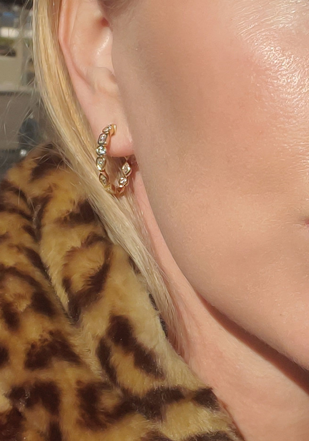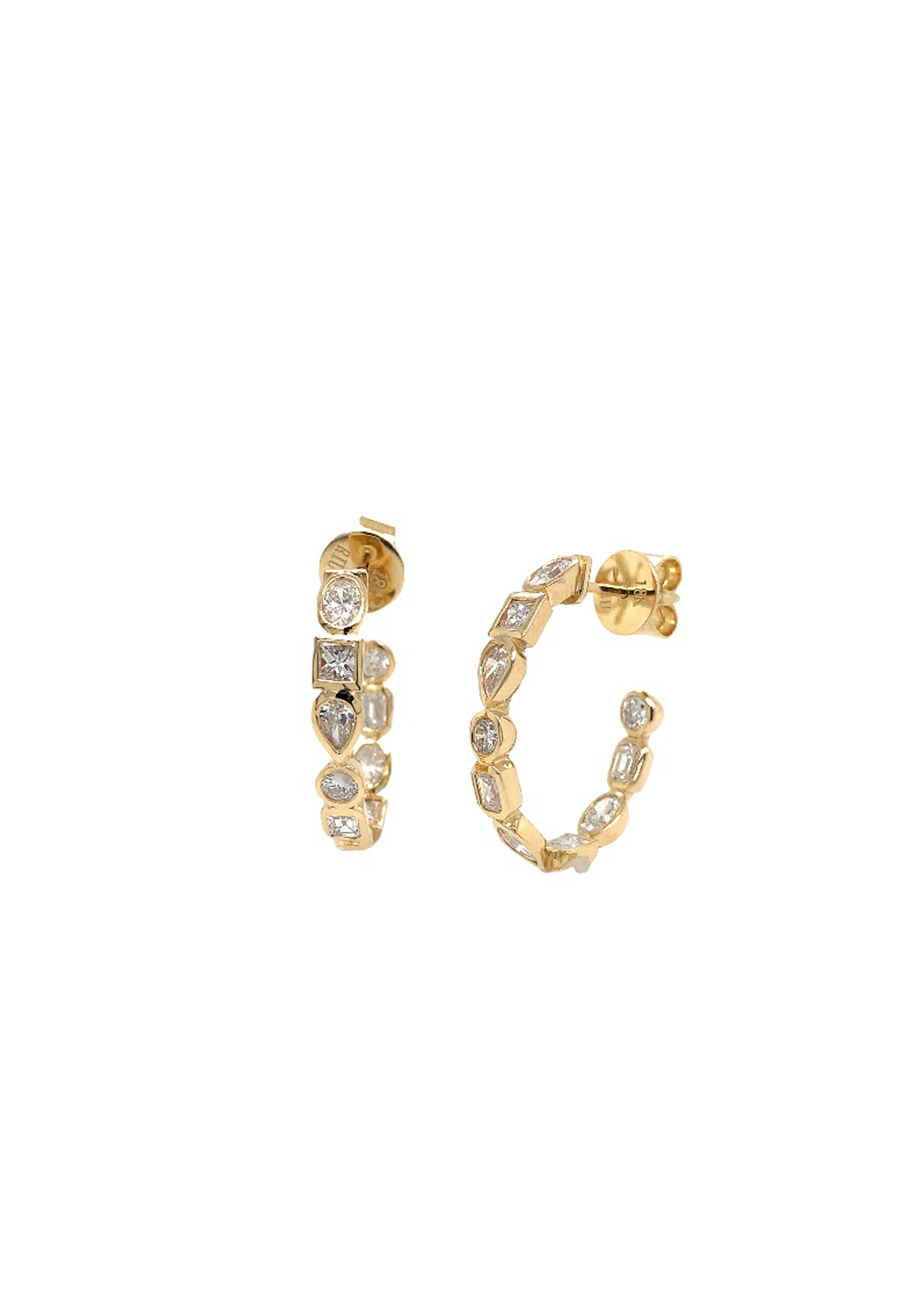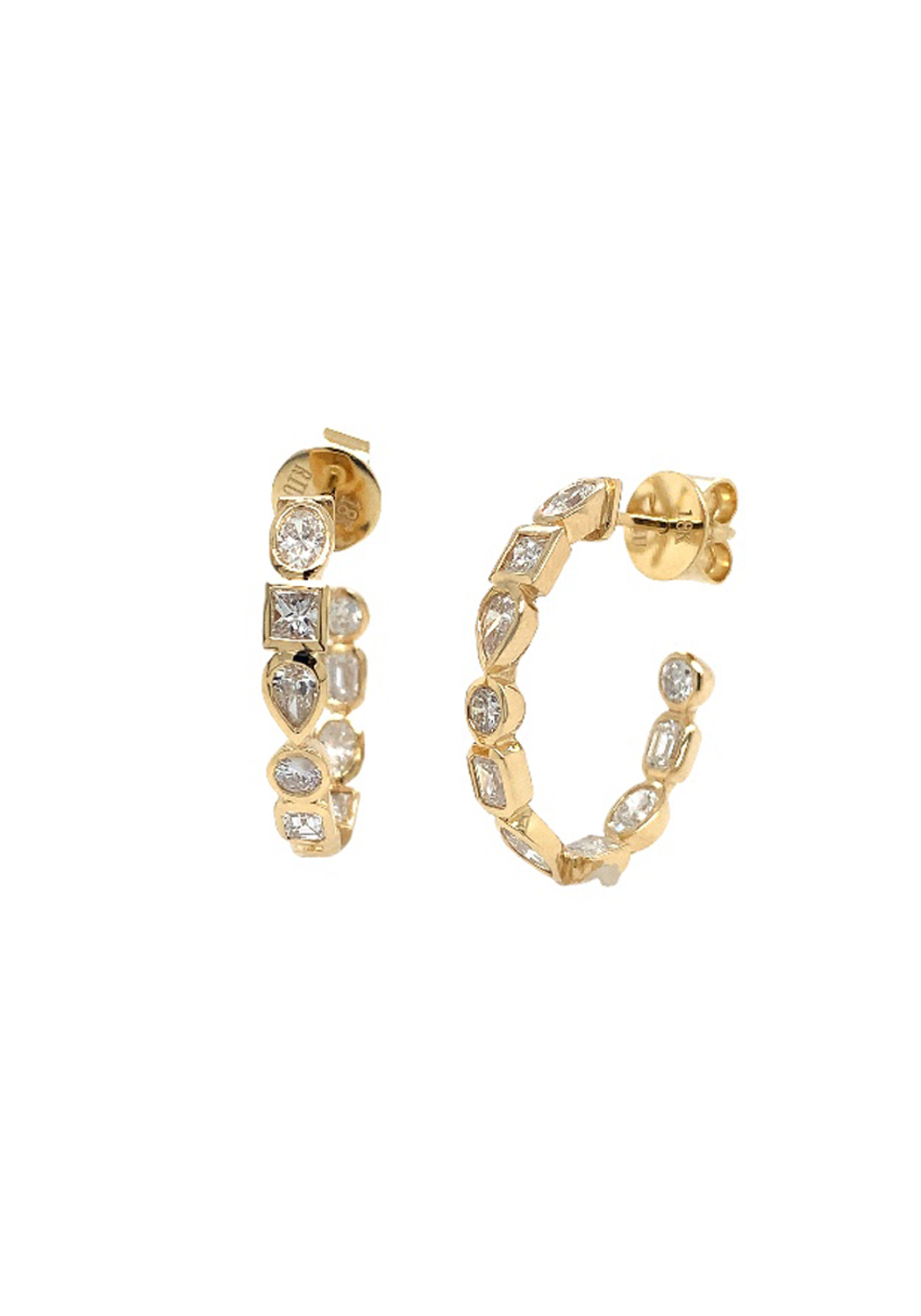 Ruchi 18KYG Mixed Shape Diamond Open Hoop Earrings