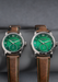 - Aged brown leather strap with color coordinating green stitches & alsavel gold leather lining