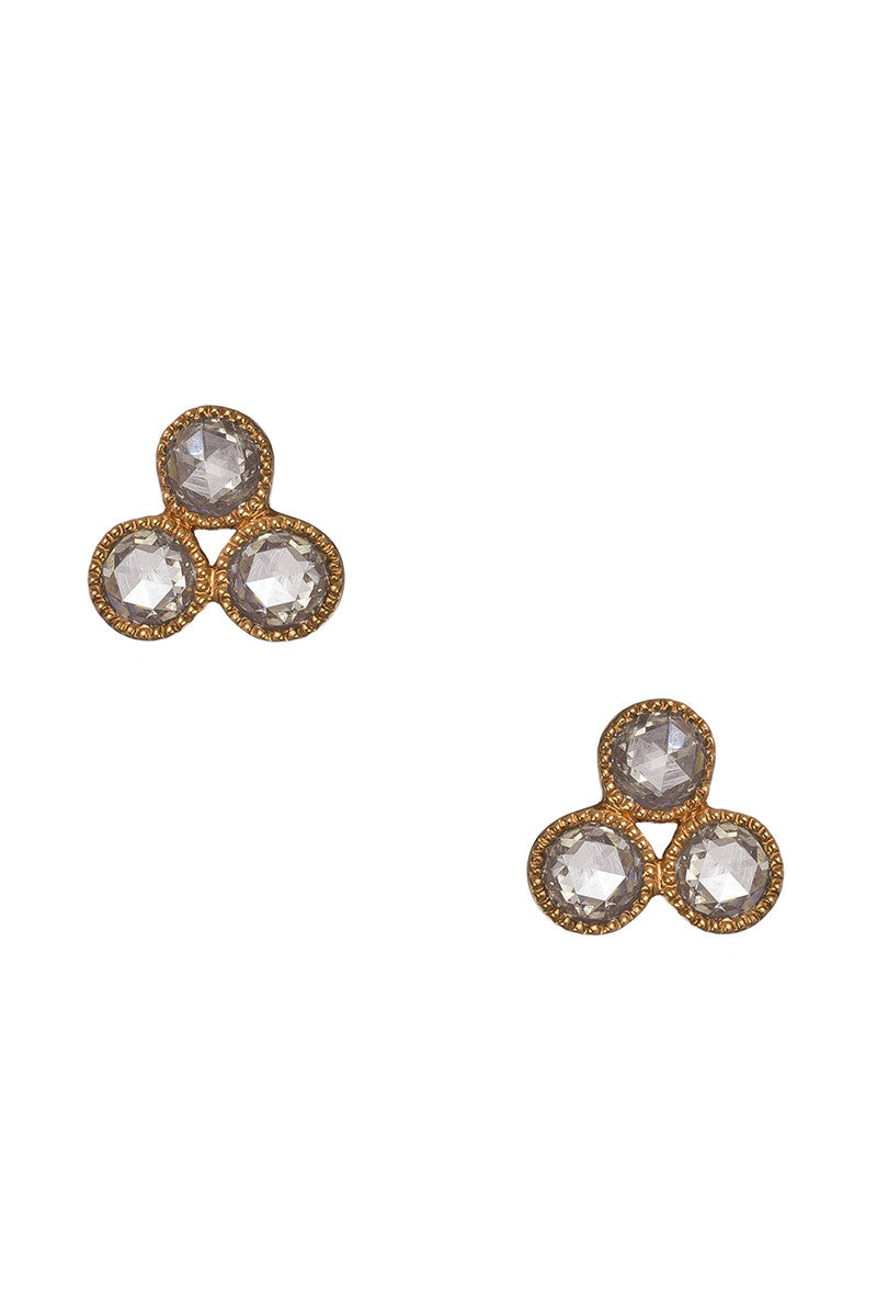 A contemporary twist on a classic, these Sethi Couture Grace stud sparklers feature a trio of rose cut diamonds with milgrain detailing cast in rose gold. A fabulous look for any occasion, these diamond stud earrings complement any outfit and can be paired with a 2nd or 3rd piercing for a unique personalized look.