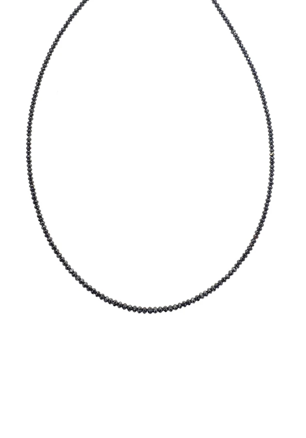 The Sethi Couture Noir 14KYG Black Diamond Necklace exudes a sleek allure, with faceted black diamonds strung in a radiant point-to-point design. Finished with a 14K yellow gold clasp, it offers a secure touch of sophistication perfect for elevating your daily style. Whether layered for added drama or worn solo as a statement of modern elegance, this necklace is a striking addition to any jewelry collection.
