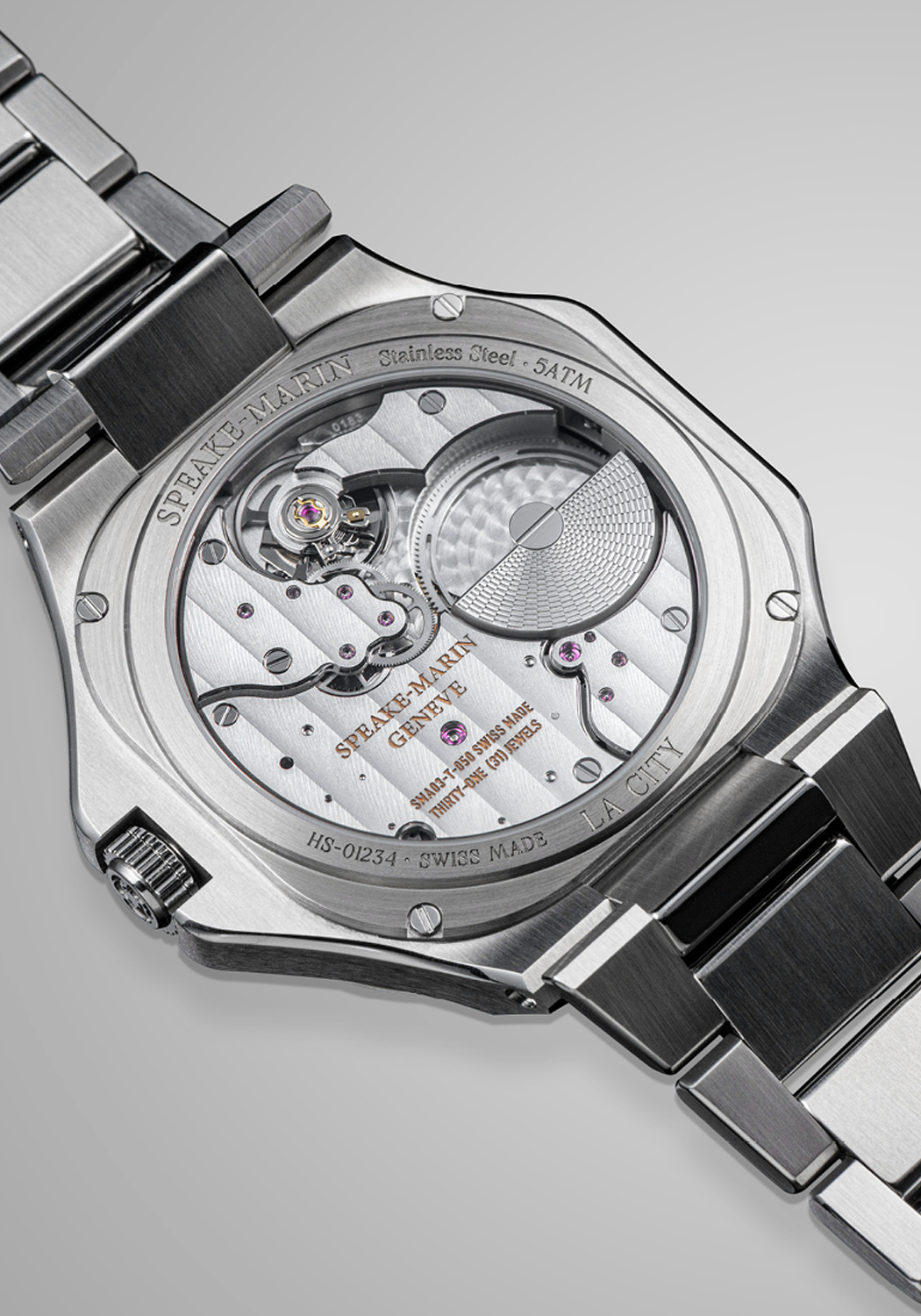 The new 40mm stainless steel case, called “La City” reflects the architecture of London's eponymous financial district, which combines business, heritage and design. A round square or a square in the round, Ripples offers an original shape and its "Big Ben" hands are a tribute to Speake-Marin's British roots. The SMA03 movement has been upgraded in terms of finishings to create SMA03-T, where “T” stands for “tradition” as a reference to traditional fine watchmaking know-how. With a power reserve of 52 hours, this timepiece has been exceptionally executed with hand-finished bridges, inner angle and is entirely rhodium-plated.  It is a piece that blends into everyday life and can be worn all week long, whether at work or under casual circumstances. Its exclusive contemporary design expresses the sharp taste and demonstrates a strong watchmaking knowledge of the wearer.