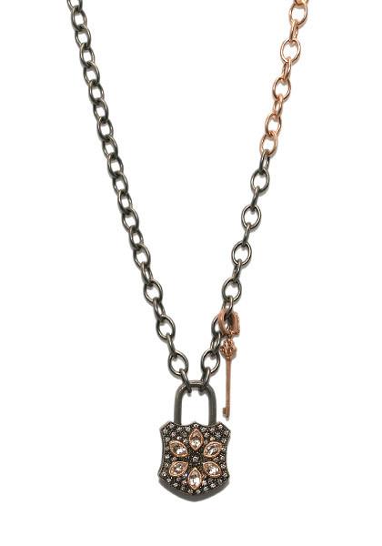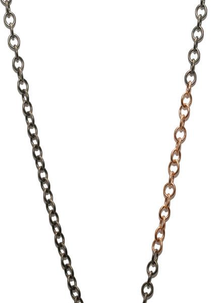 Embrace the timeless allure of this 40" blackened silver Rolo chain necklace, enhanced by a striking 3" section of 18k rose gold. With a lobster clasp for secure wear, this exquisite piece marries old-world charm with modern sophistication, making it a captivating addition to any jewelry collection. Please note, the locket is sold out.