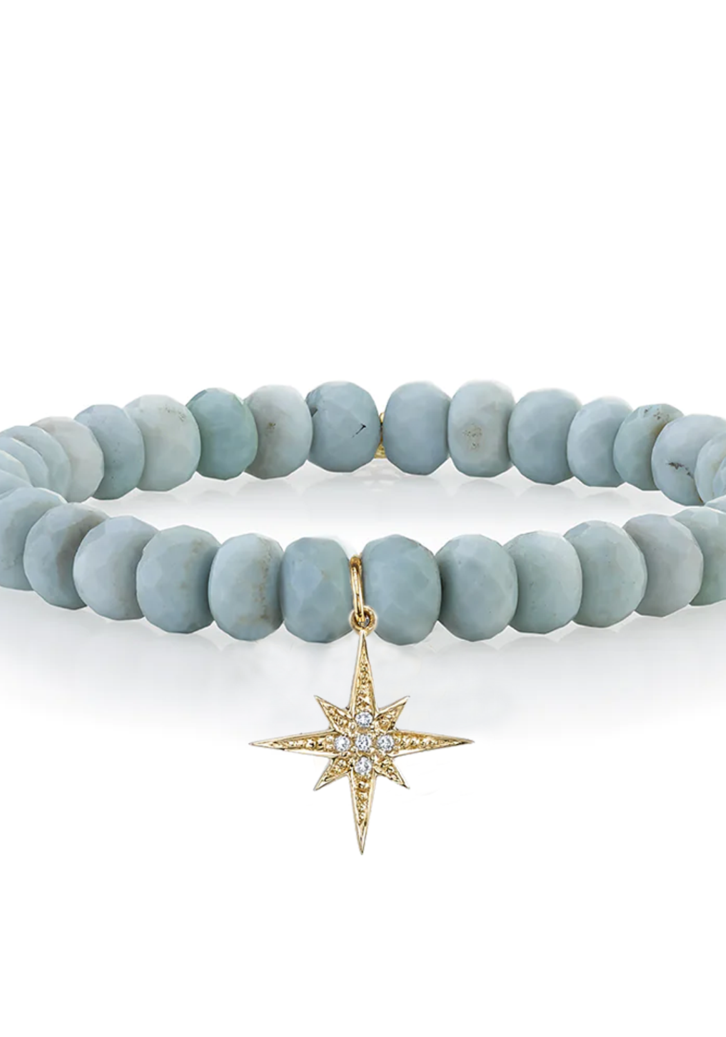 Sydney Evan Diamond Starburst Charm Blue African Opal Bead Bracelet