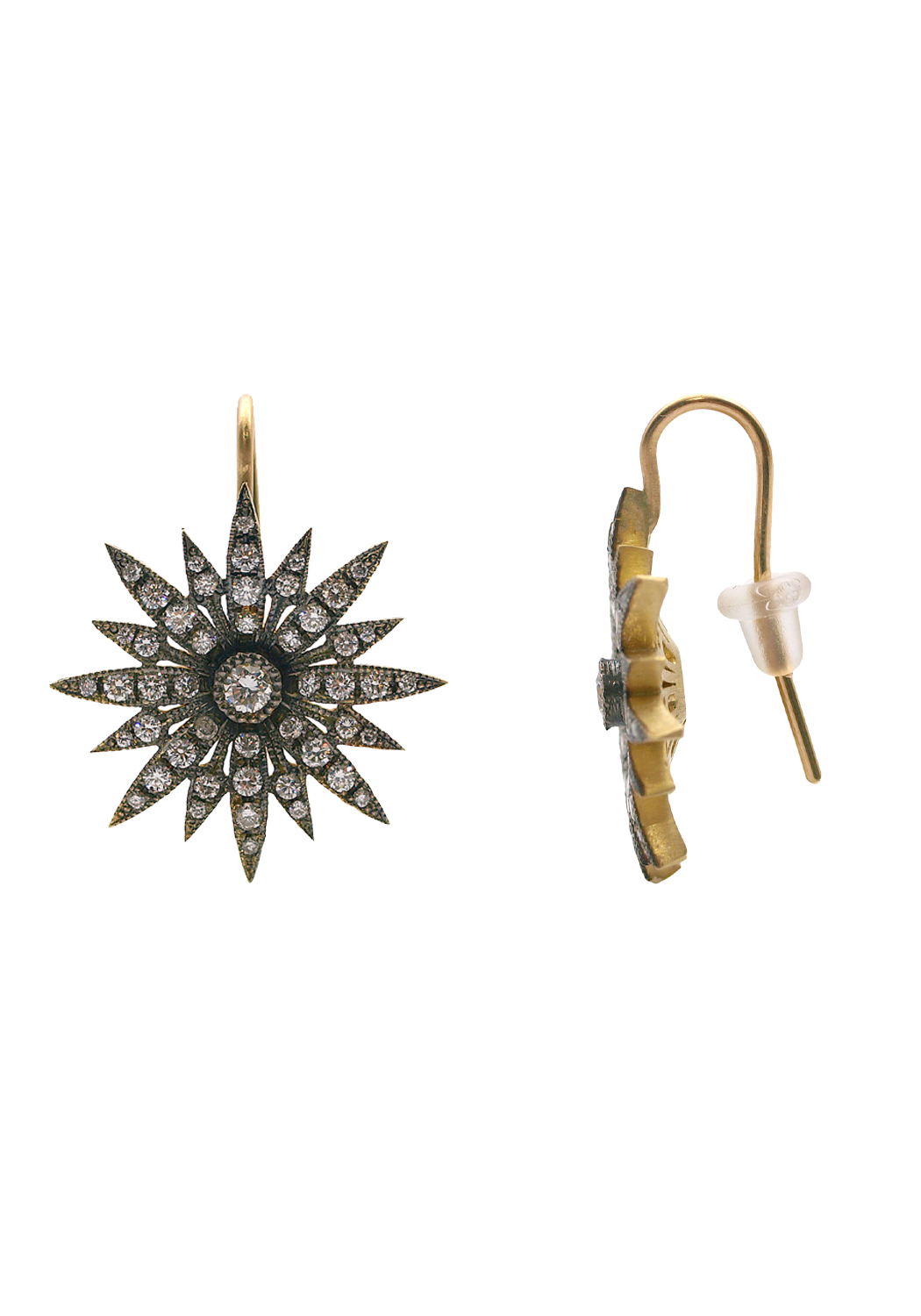 Sylva & Cie 18K Yellow Gold Starburst Diamond Earrings