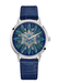 Encased in 18K white gold, the watch measures a comfortable 38 mm diameter with diamond-set lugs and water resistance up to 3 ATM. The strap, crafted from shiny blue calfskin with an alligator pattern, is hand-sewn in Geneva with visible saddle stitching, complemented by an 18K white gold pin buckle in an exclusive TAOS design. Every element of this exquisite timepiece has been thoughtfully conceived, serving to highlight the artistry of the TAOS team of artisans.