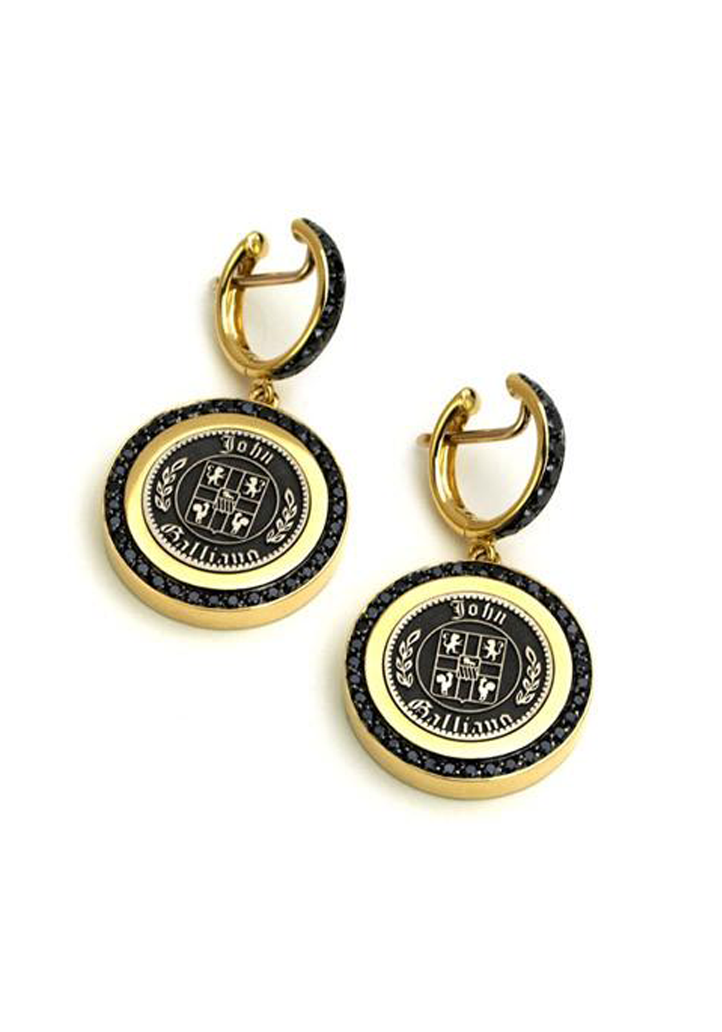 Crafted with meticulous attention to detail, the Valente 18K Yellow Gold Black Diamond Signet Disc Earrings exude sophistication and elegance. Designed by John Galliano, these exquisite earrings feature a 3/4" blackened gold signet disc that gracefully hangs from a 1/2" thin huggie. Encrusted with 1.09 carats total weight of black diamonds, the channel setting on both the huggie earring and the edge of the disc adds a touch of luxury to these stunning earrings. Whether worn for a special occasion or to elevate everyday attire, these earrings are a testament to Valente's commitment to exquisite craftsmanship and timeless design.